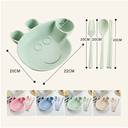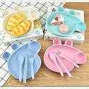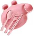 Peppa Pig Theme Cute Plate, Spoon, Fork and Chopstick Wheat Straw Set for Kids (Pack of 1)