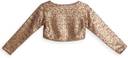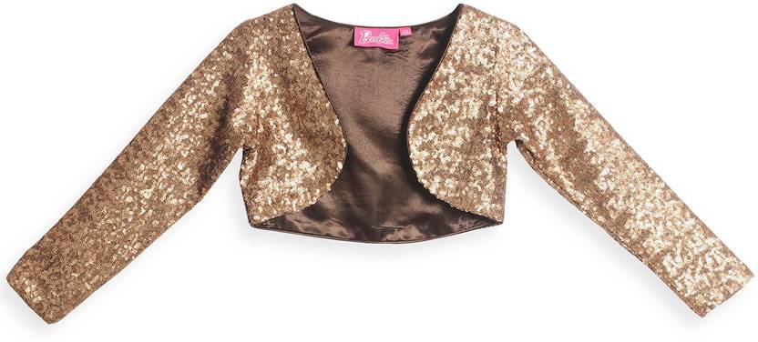 Barbie long sleeves party shrug in sequinned novelty fabric & contrast lining. The shrug is highlighted with satin cord edging.