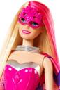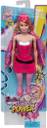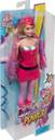 Doll Wears her Signature Superhero Costume of Pink Shiny Bodice with Silvery Trim and Removable Pink Skirt