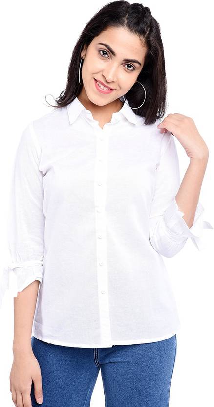 Women Regular Fit Solid Cut Away Collar Casual Shirt