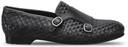 Black Genuine leather Hand Woven Double Monk Slip On Shoe For Men