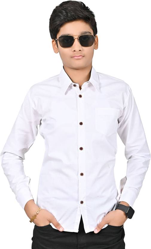 barkatdesigningplanet Boys Solid Casual White Shirt