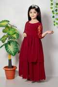 Chiffon Stitched Flared/A-line Gown (Maroon)