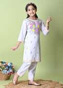 Adorned in a blend of floral and geometric patterns, this girl's kurta and pyjamas set can offer a visually appealing look. The delicate floral motifs can bring a touch of elegance, while the geometric patterns add a modern twist. And, this combination can also make this set suitable for various occasions, from festive celebrations to family gatherings.