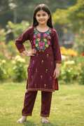 Adorned in a blend of floral and geometric patterns, this girl's kurta and pyjamas set can offer a visually appealing look. The delicate floral motifs can bring a touch of elegance, while the geometric patterns add a modern twist. And, this combination can also make this set suitable for various occasions, from festive celebrations to family gatherings.