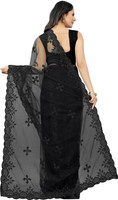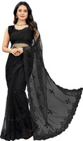 Barkiya Creation Embroidered Bollywood Net Saree (Black)