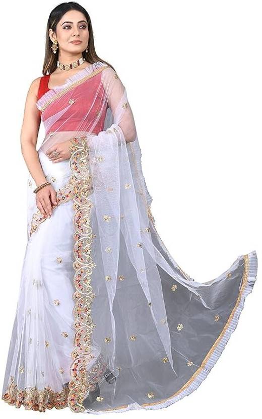 Perfect for festive season , party wear, marriage, anniversary or any other function. Perfect for gifts. 100 % Checks Pattern Stone Work Net Saree. Saree Fabric: net