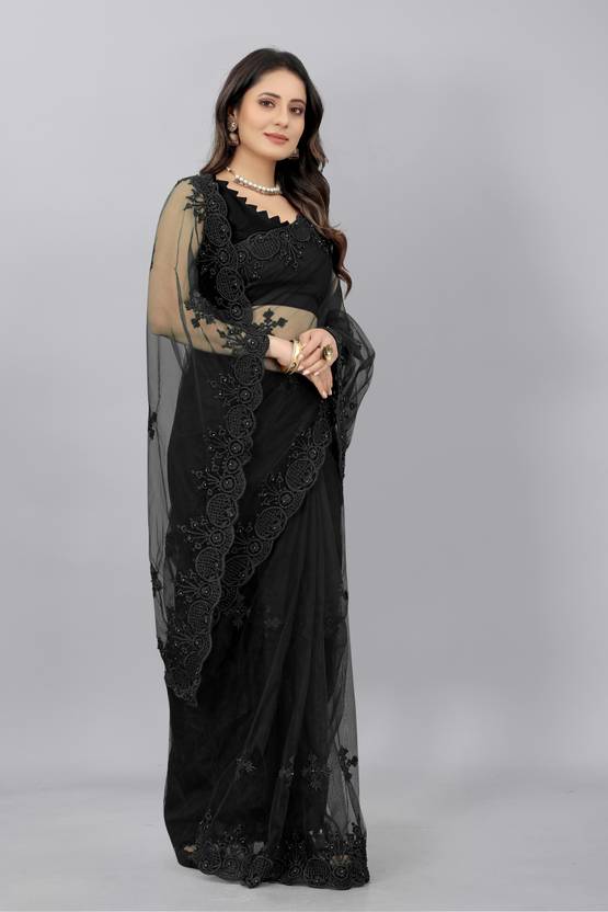 Barkiya Creation Embroidered Bollywood Net Saree (Black)
