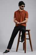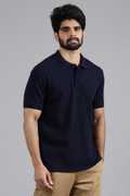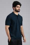 Baromin Solid Men Polo Neck Blue T-Shirt