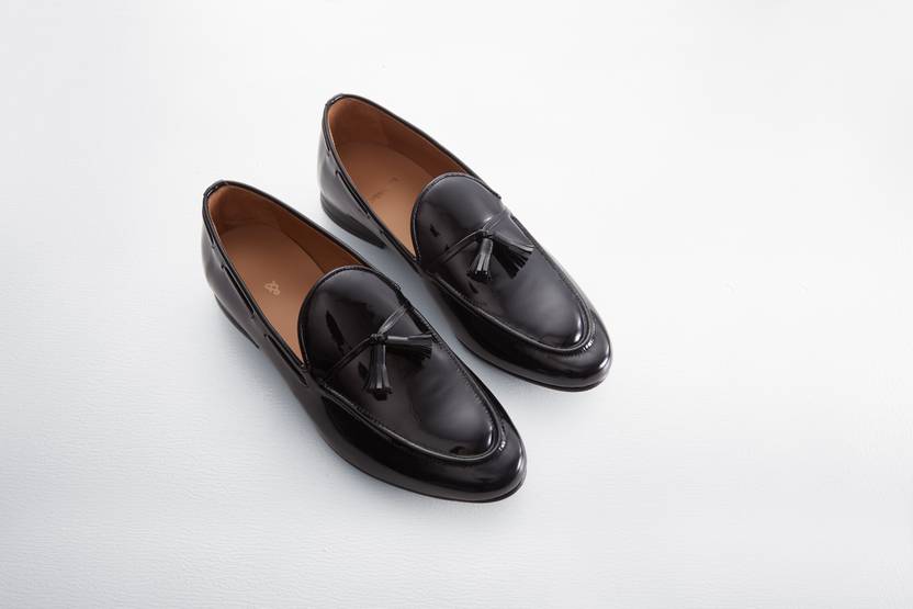 Men’s genuine leather loafers shoes Casuals For Men (Black , 6)