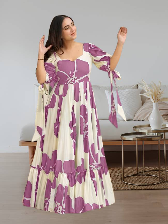Premium Reyon Fabric: Lightweight and luxurious.Elegant Design: Intricate details for added glamour.Flattering Fit: Well-tailored for various body types.Versatile: Suitable for formal events and special occasions.Subtle Sophistication: Serene Light Purple hue.Easy Maintenance: Simple care for convenience.Multiple Sizes Available: Ensure the perfect fit.