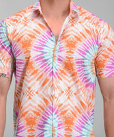 Adorned with vibrant prints, this men's shirt exudes timeless appeal. The elevated aesthetic of this shirt adds flair to your wardrobe, ensuring you stand out effortlessly at any social gathering. Moreover, the tie-dye prints offer a sleek, retro vibe, making this shirt suitable for those seeking a nostalgic yet stylish look.