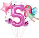 Bash N Splash Printed Fairy Princess Birthday Party Decoration Balloons 5th Birthday Star & Confetti 5 Balloon (Pink, Pack of 9)