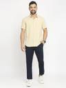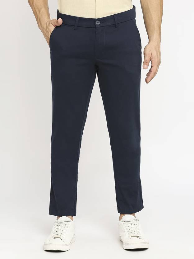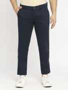Stride on with pride in these brushed dobby structured trousers for men from Basics. Detailed with a self waist band having embroidery, they sit on the waist tapering from the knee to bottom. Team this flat front pair that has cross pockets with a smart formal short to work or a Polo on an evening out. Striped pocketing, double welt back pockets and classic belt loops complete the pants.