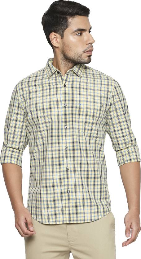 BASICS Men Checkered Casual Dark Blue, Light Blue, Yellow Shirt