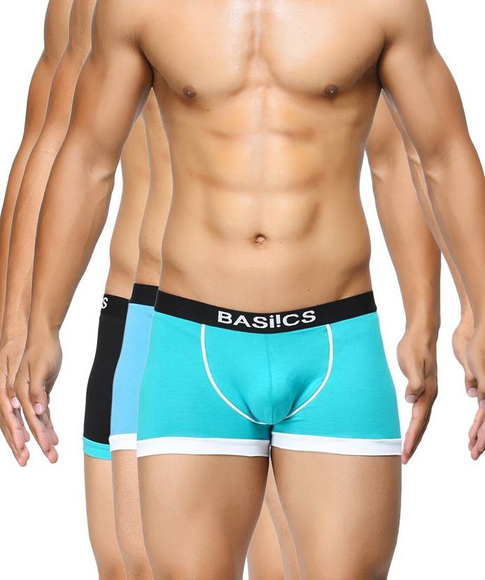 You can get this amazing trunk from BASIICS collection by La Intimo in different hue variants in a combo pack of 3 such as blue, black and teal, blue, teal and white, blue, red and yellow and some others.