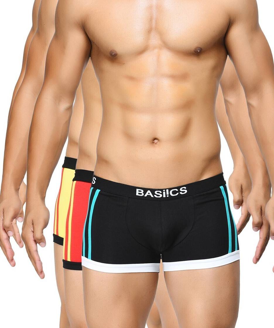 This innerwear has anti-bacterial finish and contoured front pouch design, which adjusts according to your body edges. Adding on to it, the pouch of this trunk is designed in a manner which maintains the lower body temperature. Therefore, grab this stunning and outstanding ultra-comfy trunk innerwear in distinct shades including blue, red and yellow, black, red and yellow, blue, teal and white and some others in a combo pack of 3.