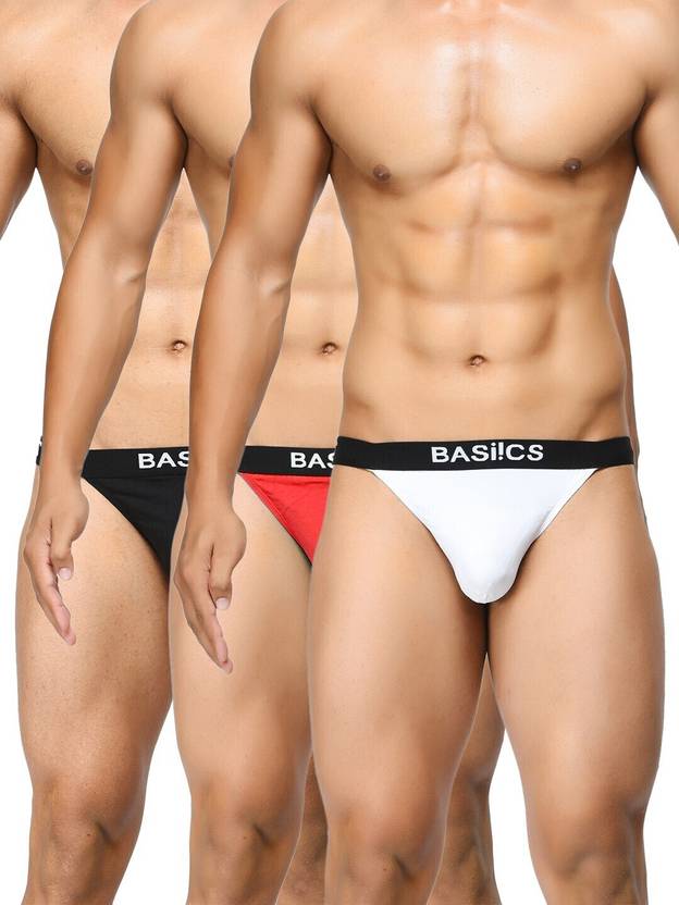 Furthermore, the pouch design of this exotic innerwear thong gives extra breathing space to maintain the lower body temperature. The elastic waistband of this naughty yet stylish thong underwear is immensely soft and smooth on the skin. Also, it maintains its grip from the waistline. The prominent plus point about this men's thong from BASIICS collection is that it has an anti-microbial finish and prevents your scrotal area from unwanted rashes and irritation. Get your hands on this super stylish thong underwear in distinct colour combinations such as blue, teal and white, black, red and yellow, black, red and white and some other combo packs of 3.