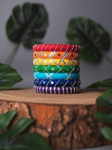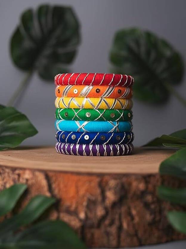 Cotton Thread Work Handmade Bangles Set For Women ( Pack of 7 )