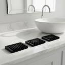 Baskety Soap Dish Tray Saver Holder Drainer, Black Pack of 3 (Black)