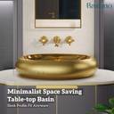 BASSINO Bassino Art Wash Basin Countertop, Tabletop Ceramic Bathroom Sink/Basin EU-028 Table Top Basin (GOLD)