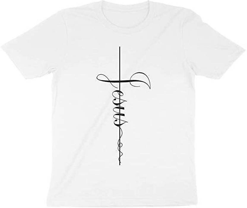 Jesus Cross T-Shirt for Men Sports Regular Fit For Men Sizes (White) S Men Graphic Print Round Neck Cotton Blend White T-Shirt