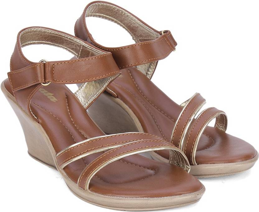 Bata DOUBLE STRAP WEDGE Women Wedges (Tan , 4 UK/India)