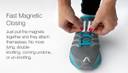Magnetic shoe closures are quite simply the fastest and easiest way to get in and out of your own shoes! No tying, no knots, no squeezing, no laces coming undone, no sloppy bows. (patents pending) When the magnets are separated it's as if you have no shoelaces at all, so you can easily slide into a wide open shoe. Then, just click the magnets together and that's it! Go for a run. Afterwards, just step on your heel and pop out of your shoes hands-free.