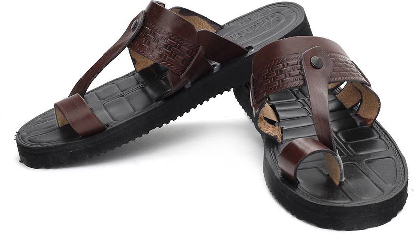 Stride and style with this striking combination of leather and synthetic flip-flops and make a classy statement. Offering a secure grip with the convenient toe-loop and serrated and flexible sole, these brown flip-flops provide supreme comfort during long evening walks.