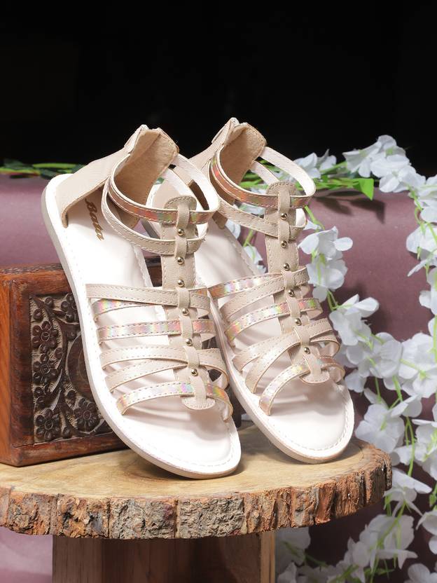 Bata Girls Slip-on Gladiators (Gold , 7.5-8 Year)
