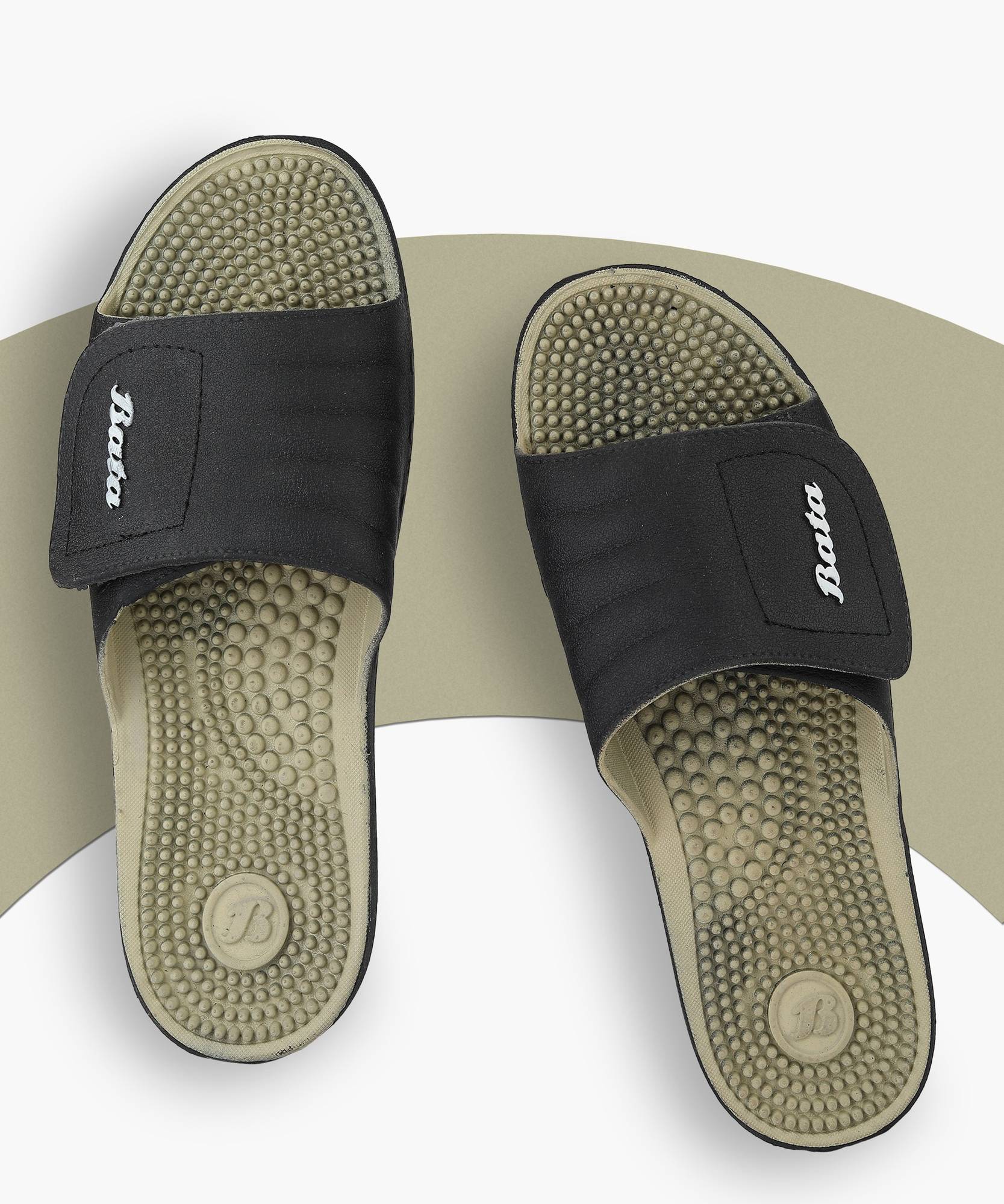Bata Men Slides (Black, Beige , 8 UK/India)