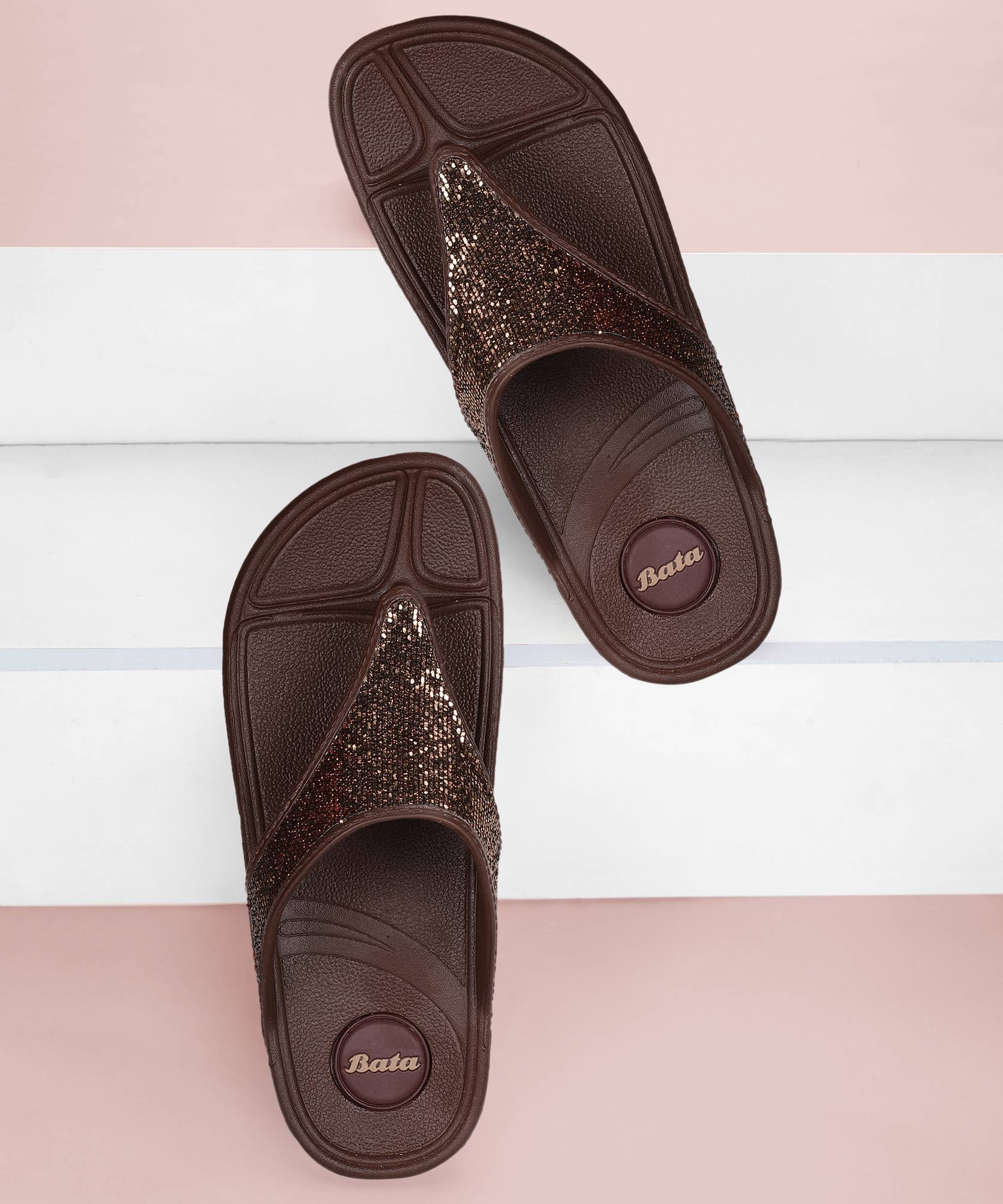 Effortlessly combining fashion with functionality, these flip-flops with wedge heels feature glitter embellishments on the straps, thus serving as a sparkling statement piece that can add a touch of glamour to any outfit. The glitter detailing on the front catches the light and adds a playful shimmer to your ensemble. What’s more, these sparkling adornments are designed to retain their shine even after extended use, thus preserving their alluring appearance.