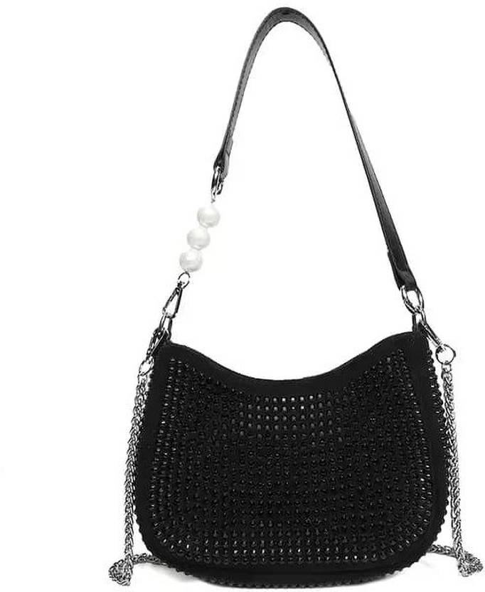BATCAT Black Women Sling Bag Allover Rhinestone Decor Square Bag With diamond Purse (Silver)