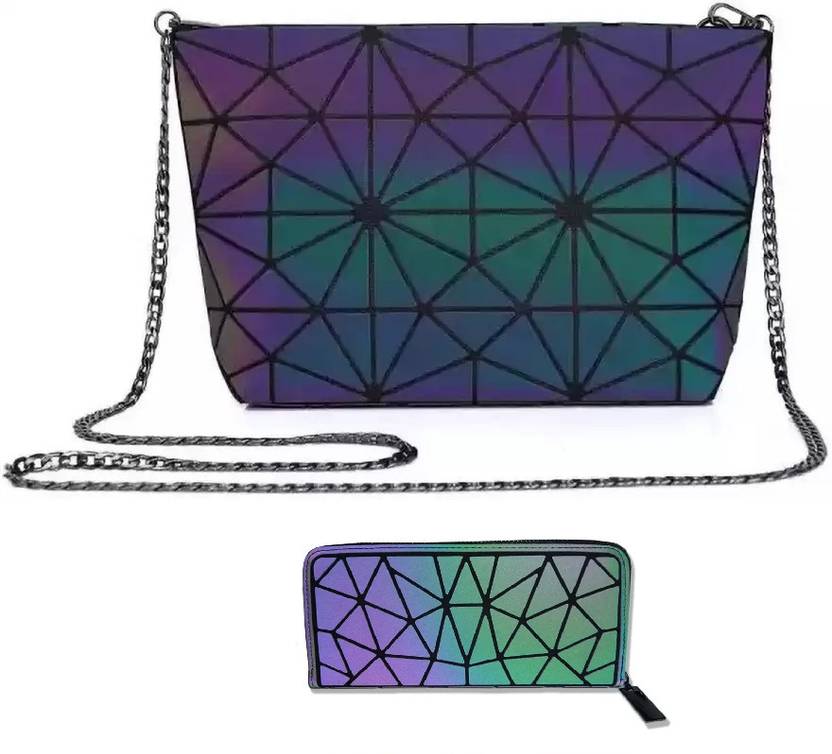 geometric Holographic Women's Sling Bag & with One Makeup Pouch Sling Chain Bag