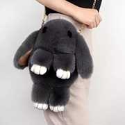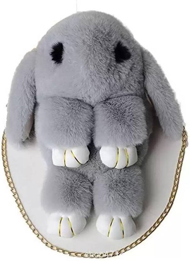 BATCAT Grey Sling Bag Fluffy Rabbit Soft Cute Bunny Sling Bag With Chain And Smooth Zipper For Girls