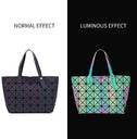 Trendy yet Capacious - This tote bag can store up just what every girl needs when going out, such as mobile phone, tablet, magazines, cosmetics, power bank, wallet, daily supplies, etc. It’s slim shape allows for it to be folded e stored flat when empty.ys, lipstick ect. Unique Reflective Luminous Handbags which changes Color when Light Changes. Stylish and cool design, the color changes with the light, let you be full of personality. Popular styles and individuality?It's A Perfect Gift For Girlfriend,Mother,Wife, Sister , Valentine's Day Present. Size: 43 cm X 26 cm approx . Not including handles Roomy enough for mobile phones, wallet, cosmetics, sunglasses, umbrella, mini ipads and other daily necessities Design: Geometric lattice pattern and shiny hologram laser fabric color may vary on lighting conditions. Please check size before purchasing