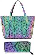 geometric Holographic Handbags with One Makeup Pouch Women's Styles