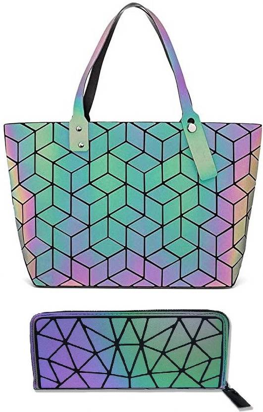 Trendy yet Capacious - This tote bag can store up just what every girl needs when going out, such as mobile phone, tablet, magazines, cosmetics, power bank, wallet, daily supplies, etc. It’s slim shape allows for it to be folded e stored flat when empty.ys, lipstick ect. Unique Reflective Luminous Handbags which changes Color when Light Changes. Stylish and cool design, the color changes with the light, let you be full of personality. Popular styles and individuality?It's A Perfect Gift For Girlfriend,Mother,Wife, Sister , Valentine's Day Present. Size: 43 cm X 26 cm approx . Not including handles Roomy enough for mobile phones, wallet, cosmetics, sunglasses, umbrella, mini ipads and other daily necessities Design: Geometric lattice pattern and shiny hologram laser fabric color may vary on lighting conditions. Please check size before purchasing