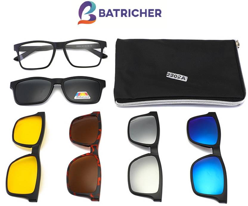 BATRICHER brings you the 6 in 1 Unisex Magnetic Sunglasses Gadget so you can have a new fashionable pair everyday! The fashionable black frame comes with a clear UV protective glass that can be used on the computer to protect your eyes. You can even get prescription number glasses put in the frame. It comes with 5 magnetic attachments that convert this frame into 5 different sunglasses!
