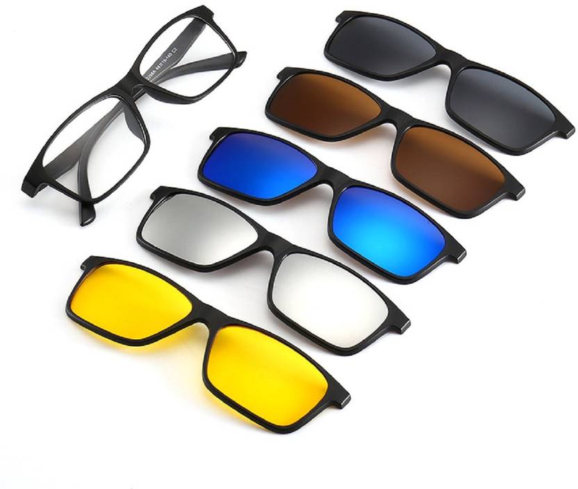 STYLISH & MULTIFUNCTIONAL - 1 x Optical frame + 5Pcs magnetic sunglasses clip. The clip-on sunglasses with strong magnetic function can suck the metal frame. Black lens is polarized lens, yellow lens is night vision lens, brown / blue / silver lens are mirrored lens. People can easily take a pair of sunglasses with different color lens to drive, fish, attend a party and a variety of outdoor activities. CAN BE REPLACED WITH OPTICAL LENS - Rx optical frame is just come with clear demo lens, you can buy and take this frame to local optical store to filling the prescription lenses, or choose and buy the prescription lens together from us. 100% UV400 PROTECTION - All of clip ons are UV400 protection lens. Lenses filters 100% of all UVA, UVB, UVC and harmful blue light up to 400nm. UV 400 are essential to protect your eyes against long-term UV damage and keep your eyes healthy while going out.
