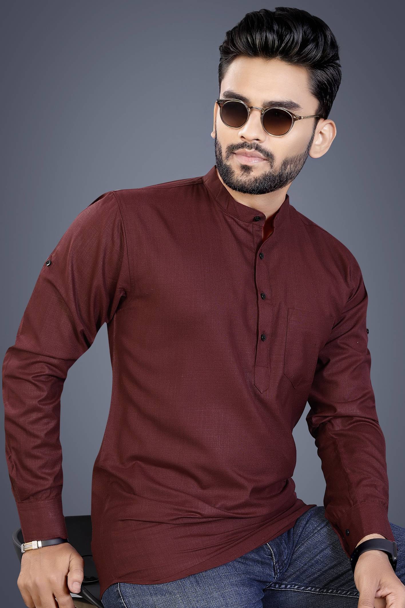 SPOQUE Men Solid Straight Kurta (Maroon)