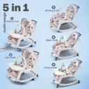 baybee 5 in 1 Baby Rocking Chair for Kids Hanging Toy Baby Dining Booster Seat for Baby (Multi Position Recline Music Wheels Food Tray for 0 to 2 Years Boys Girls (Grey))