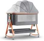 Baybee 3-in-1 Baby Bedside Crib is a multifunctional and practical solution for parents seeking comfort, safety, and convenience for their little one. This versatile crib offers three functions in one: a bedside crib, automatic cradle, and foldable bassinet, making it an excellent choice for babies from 0 to 3 years old. It features 6 adjustable height settings to ensure seamless bedside access, allowing you to keep your baby close during the night. The automatic cradle gently rocks your baby to sleep, helping to soothe them without any effort. Designed with portability in mind, the crib can be easily folded for storage or travel, making it ideal for parents on the go. A built-in mosquito net protects your baby from insects, ensuring a safe and comfortable sleep environment. The crib is equipped with locking wheels for added stability and security, while the breathable mesh sides provide excellent airflow, keeping your baby cool and comfortable. Whether at home or during travel, this portable baby crib is designed for both safety and comfort, making it the perfect addition to any nursery.