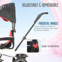 The Baybee Duke isn't just a tricycle; it's a journey of growing up. Transition seamlessly from a safe, controlled tricycle with a parental handle to an independent, pedal-powered adventure on EVA wheels. Perfect for kids aged 2 to 5, it grows as they do, ensuring years of fun and exercise. Equipped with a sturdy safety belt and a protective canopy, the Baybee Duke ensures your little one's adventures are not just fun but safe too. The robust design and additional features like the safety bar add layers of protection, making every ride worry-free for parents. The tricycle comes with a detachable parental handle, allowing adults to easily steer and control the tricycle's direction. This feature not only helps in teaching the child the basics of riding but also ensures their safety as they learn to navigate their little world. With its high-quality EVA wheels, the Baybee Duke provides a smooth and quiet ride, making it perfect for indoor and outdoor use. The wheels are designed to grip the surface securely, reducing vibrations and ensuring a comfortable ride for your child. This tricycle emphasizes convenience right from the start with its easy assembly. The Plug N Play design ensures you can set it up quickly without the need for professional help. Constructed from durable materials, it's built to withstand the rigorous demands of playful children, promising longevity and endless fun.