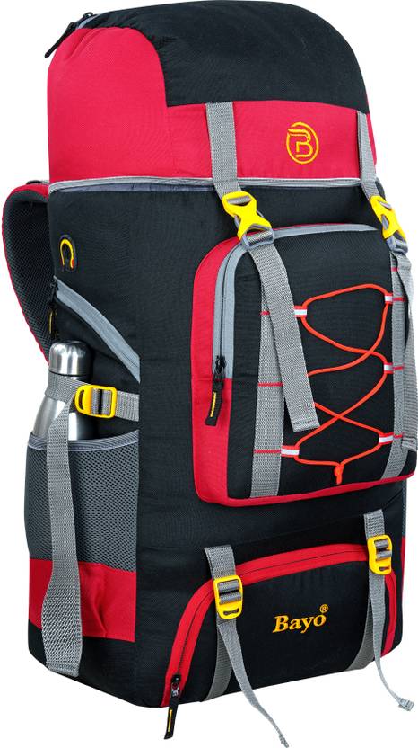 Bayo 65 Liter 26×14 Inches Water Resistance Travel Backpack /trekking Bag is a reliable, convenient and complete multi-pocket pack: a companion for all your short and long range adventures. its super-roomy compartments &  Laptop Files compartments 1 shoe compartment 2 side bottle & camera stand pockets 4 more pockets in front of the bag that lets you store stationery items, cables, chargers, pen drives, and many more Get ready for an adventurous trip by packing your stuff in this rucksack backpack. This spacious rucksack backpack will accommodate all your essentials with ease and so is a must-have. Made from polyester, this durable rucksack backpack will be a true travel companion.