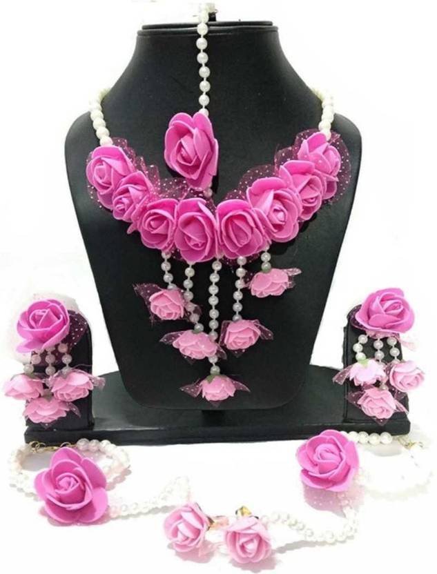 BBKA Fabric Pink, White Jewellery Set (Pack of 1)