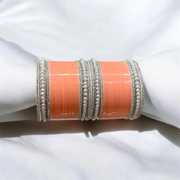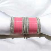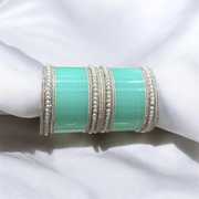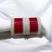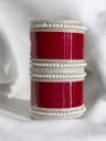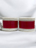 Sporting a base made from lightweight plastic, these chudas are easy to wear and carry. The silver plating adds a touch of shine while giving a clean contrast to the pearl finish. With a smooth glossy texture, each piece reflects light gently, enhancing the overall appearance. And, the pearl components are also crafted from plastic, keeping these bangles comfortable on the wrist while maintaining their form across long hours of wear. Together, the materials create a neat balance of durability and style.