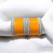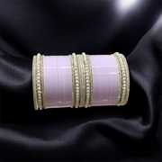 Featuring an eye-catching round pearl design, these women’s chudas bring a gentle yet striking charm to traditional wear. The pearls are arranged in a uniform circular pattern that adds grace and structure to each bangle. With a soft lustre and classic styling, the pearl elements lend a delicate finish that pairs well with festive or ceremonial outfits. Whether worn on their own or layered, the pearl detail offers a decorative look that blends tradition with subtle elegance.