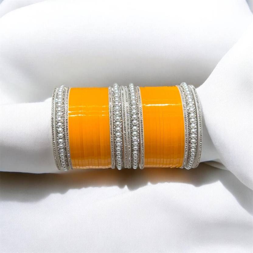 Chudas are traditional Indian bridal bangles, primarily worn by Punjabi brides as a significant part of their wedding attire, symbolizing marital bliss, prosperity, and new beginnings. These bangles, typically in shades of red, maroon, and white or ivory, are usually made of plastic, ivory (historically), or acrylic materials and are embellished with intricate designs, gold accents, or embedded stones. The chuda ceremony, a pre-wedding ritual, is deeply rooted in Punjabi culture where maternal uncles gift the chudas to the bride, who wears them for a period after marriage—often ranging from a few months to over a year, depending on family tradition. While traditionally consisting of 21 bangles on each arm, modern versions may vary in number and customization, including personalized engravings or themed decorations. Symbolically, chudas represent the blessings of elders and the sacred transition from maidenhood to marital life. Brides often wear them with kalire (hanging ornaments) tied to them, which are shaken over unmarried girls' heads during the wedding as part of a playful custom to predict who might marry next. Chudas have also evolved in terms of design and cultural reach, now being adopted by brides across India and even internationally, transcending regional boundaries while maintaining their traditional significance. These bangles are not just ornamental but hold deep emotional and spiritual value, being one of the most photographed and cherished wedding accessories. Their color, arrangement, and embellishments are often chosen to complement the bridal outfit, and they can include motifs of love, fertility, and divine protection. Although deeply associated with Sikh and Punjabi Hindu communities, the popularity of chudas has grown among brides from various backgrounds, who embrace the beauty and symbolism of the tradition. Wearing a chuda is often accompanied by rituals involving turmeric, sacred threads, and blessings from elders to ensure a happy and prosperous married life. In contemporary times, chudas are sometimes customized in pastel shades or paired with modern attire, reflecting changing fashion trends while preserving cultural roots. Bridal photo shoots and wedding videos often highlight the chuda, underscoring its role as a key element of the bride’s identity on her special day. Even after the wedding, the chuda remains a constant reminder of the celebration and the start of a new chapter in the bride’s life, often preserved as a keepsake or passed on as a family heirloom. The charm and cultural weight of chudas lie in their blend of tradition, fashion, sentiment, and ritual, making them an enduring symbol of Indian matrimonial customs.