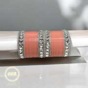 Featuring an eye-catching mirror design, these women’s chudas add charm and sparkle to any traditional outfit. The reflective mirror detailing is carefully arranged to create a balanced yet striking look that catches the light with every movement. This means that whether paired with bright hues or subtle shades, the mirror work stands out while enhancing the overall appearance.
